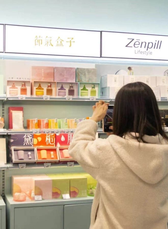 目前,節(jié)氣盒子擁有約100個產(chǎn)品sku,推出有四季茶氣、四季流心、氣味旅行、東方瓶花等系列產(chǎn)品,包含香薰蠟燭、香薰晶石、無火香薰、車載香薰等產(chǎn)品,覆蓋不同生活場景,并與敦煌、頤和園、朵云、三聯(lián)生活周刊等多個文化IP進(jìn)行過聯(lián)名開發(fā),向三福百貨、三聯(lián)生活、朵云書店合作有渠道專供款。
