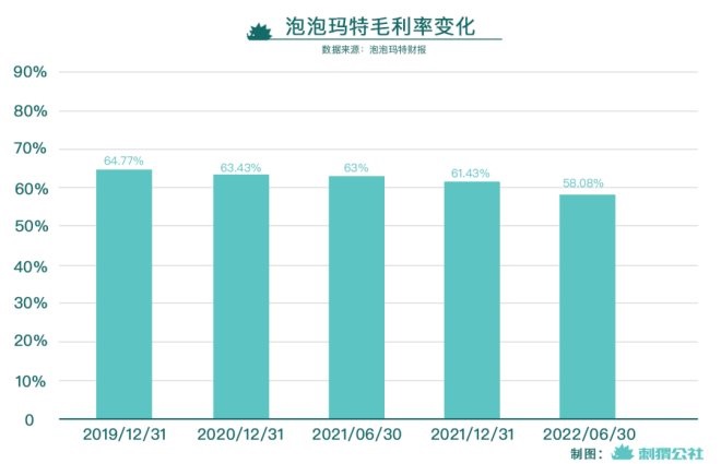 看完?duì)I收端,利潤(rùn)端一個(gè)難以被忽視的事實(shí)是:自2019年以來(lái),泡泡瑪特的毛利率正在不斷下降。