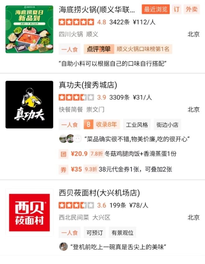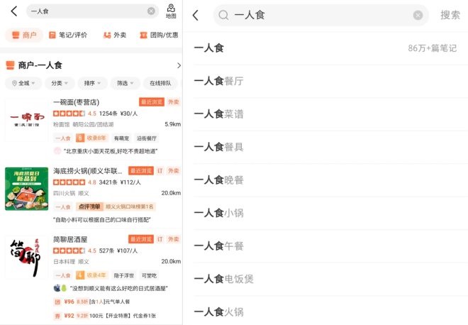 最近,內(nèi)參君發(fā)現(xiàn),大眾點(diǎn)評App店鋪搜索詞條中,新增“一人食”標(biāo)簽,不少品牌都將這一標(biāo)簽放在最前端,其中不乏海底撈、東方宮、西貝、真功夫等;