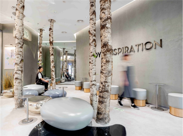 中國(guó)內(nèi)地首店分為展示區(qū)域、定制區(qū)域以及休息區(qū)域三個(gè)區(qū)域。展示區(qū)域在墻壁上按照色系或主題,有序陳列配件,定制區(qū)域位于展示區(qū)域一旁,中央放置著圓柱形的桌子,便于消費(fèi)者自己定制配件,休息區(qū)域則排列著曲線型的桌子,并且免費(fèi)為消費(fèi)者提供MagSafe手機(jī)快充服務(wù)。