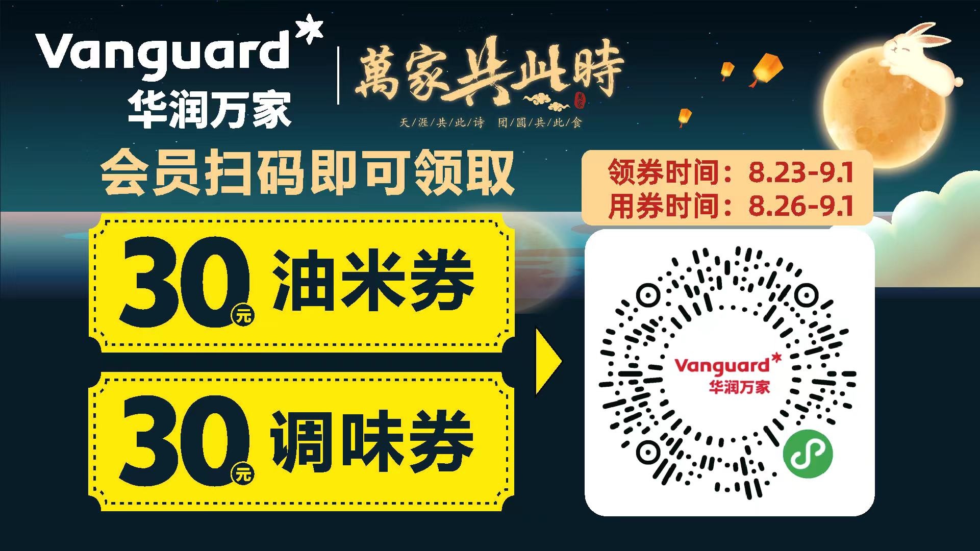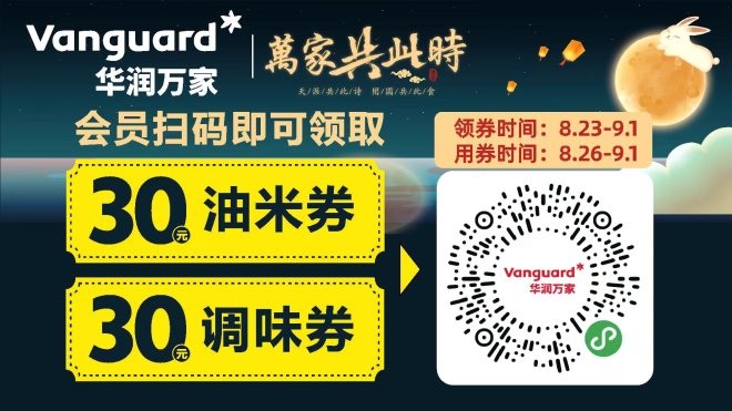 除月餅外,為滿足消費(fèi)者在中秋期間送禮、出游、聚會、團(tuán)圓等購物需求,華潤萬家還精選了節(jié)慶剛需品類如糧油米面、餐廚調(diào)味、休閑零食、洗護(hù)日化等生活必需品推出會員折扣與滿減活動, 8月26日-8月30日期間,萬余商品大放價(jià),冰激凌、牙膏、衛(wèi)生巾等5折,散裝食品、啤酒、沐浴洗發(fā)用品等6折,單筆消費(fèi)滿498元再送50元券1張。除了大力度的折扣之外,會員還可掃碼領(lǐng)取30元油米券+30元調(diào)味券,購買袋裝品牌大米和食用油滿88元可減30元,調(diào)味料、調(diào)味醬、醬菜、火鍋底料滿68元減30元。