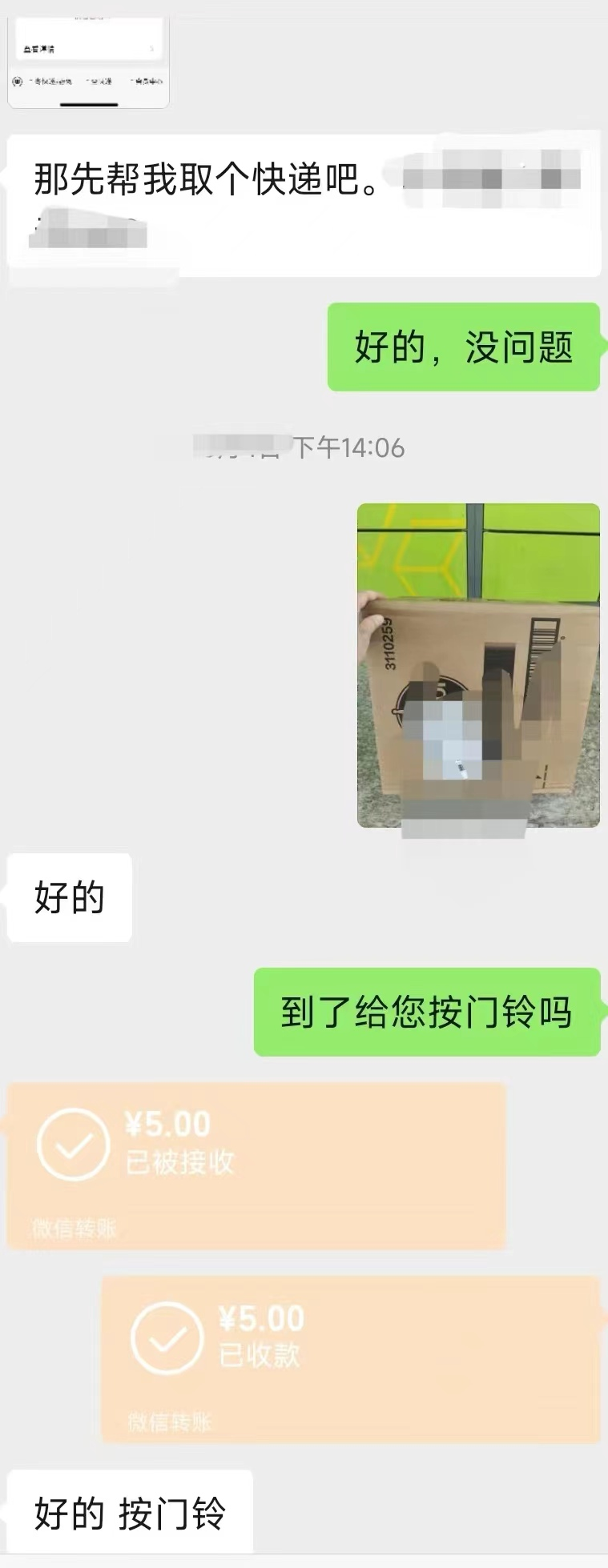在小區(qū)幫人代取外賣,