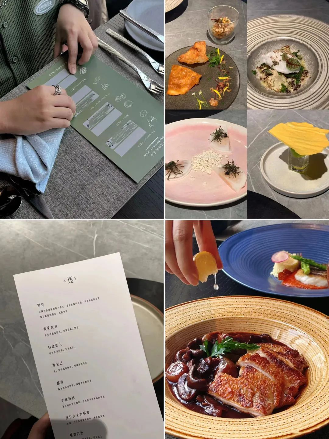 廣州?·探索料理,從店名開始就四處透著“盲”味的氣息。套餐一共14道菜品,不僅是看名字猜不出菜品,甚至連菜端上桌后,都需要自行探索才能猜到食材,全程體驗“盲盒感”。