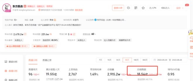 不過,公司負(fù)責(zé)人在業(yè)績電話會上透露,近三個月內(nèi),東方甄選的GMV已達(dá)20億元。8月,東方甄選主賬號日GMV更是成功突破3000萬。