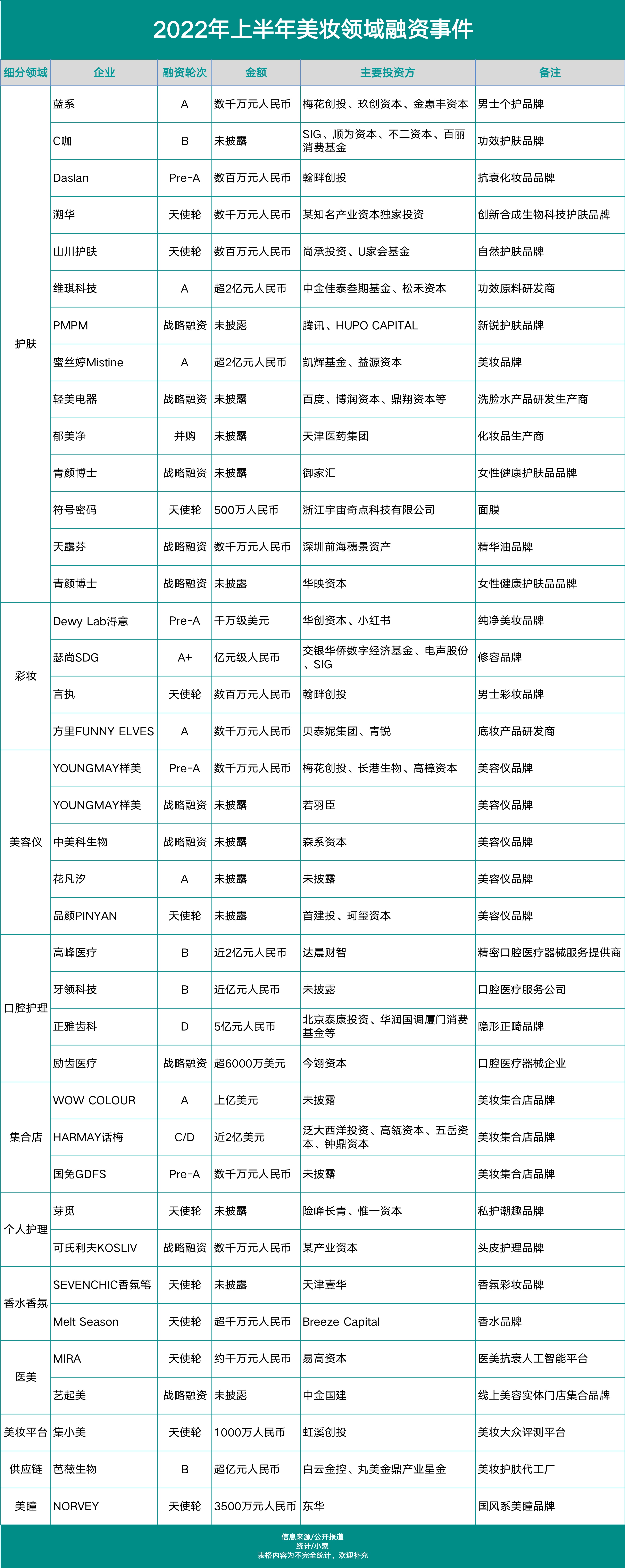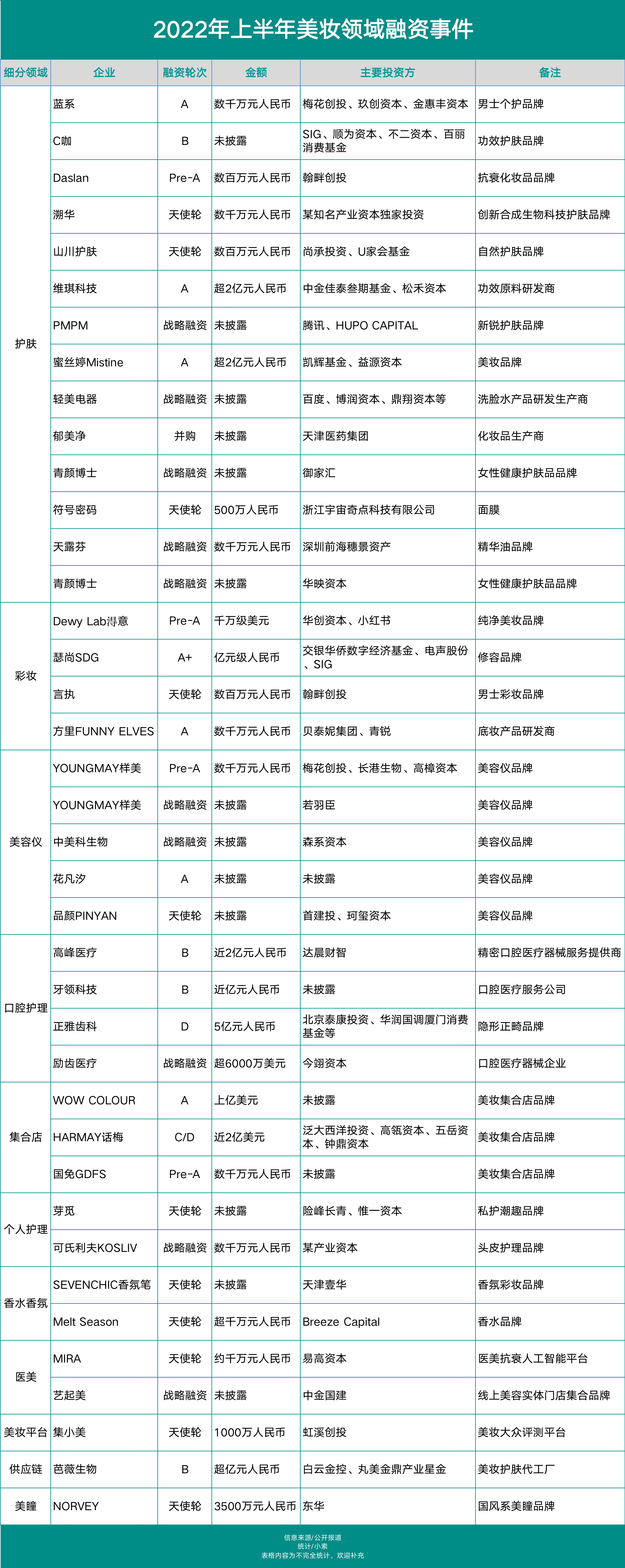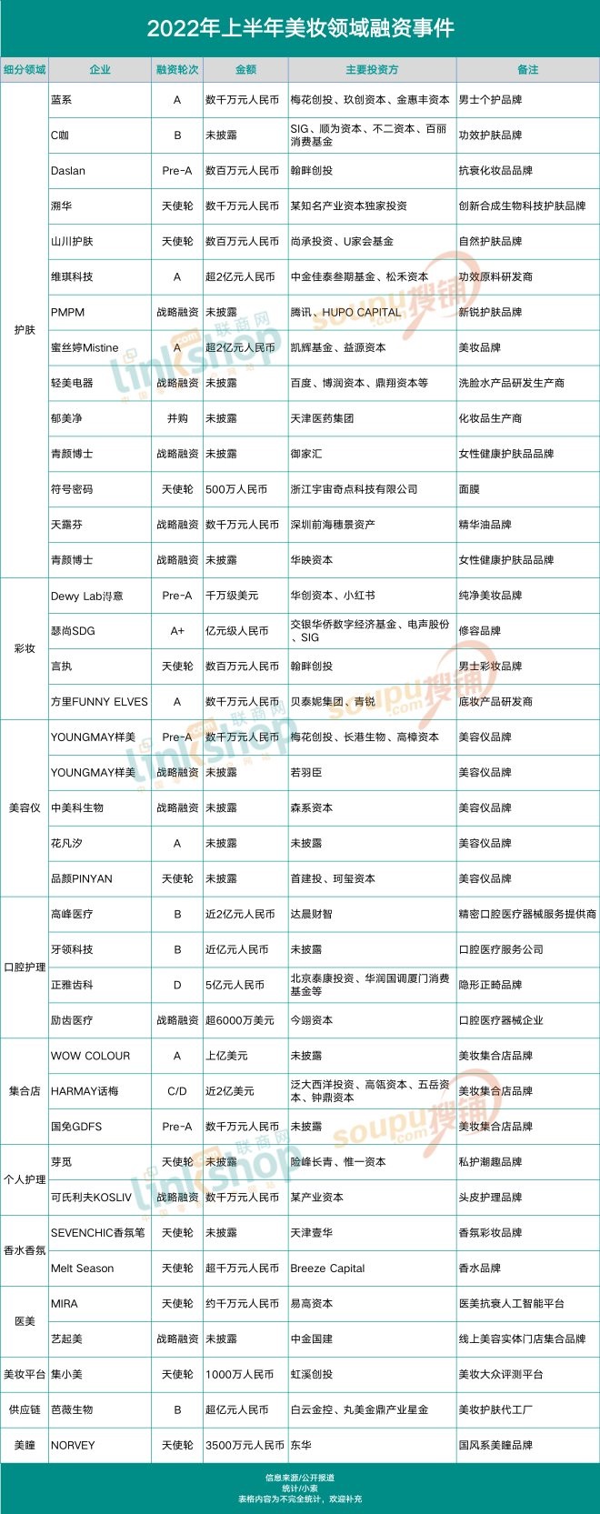 除了化妝品品牌的融資具備參考價值,美妝集團的投資風(fēng)向?qū)π袠I(yè)來說也具備很大意義。