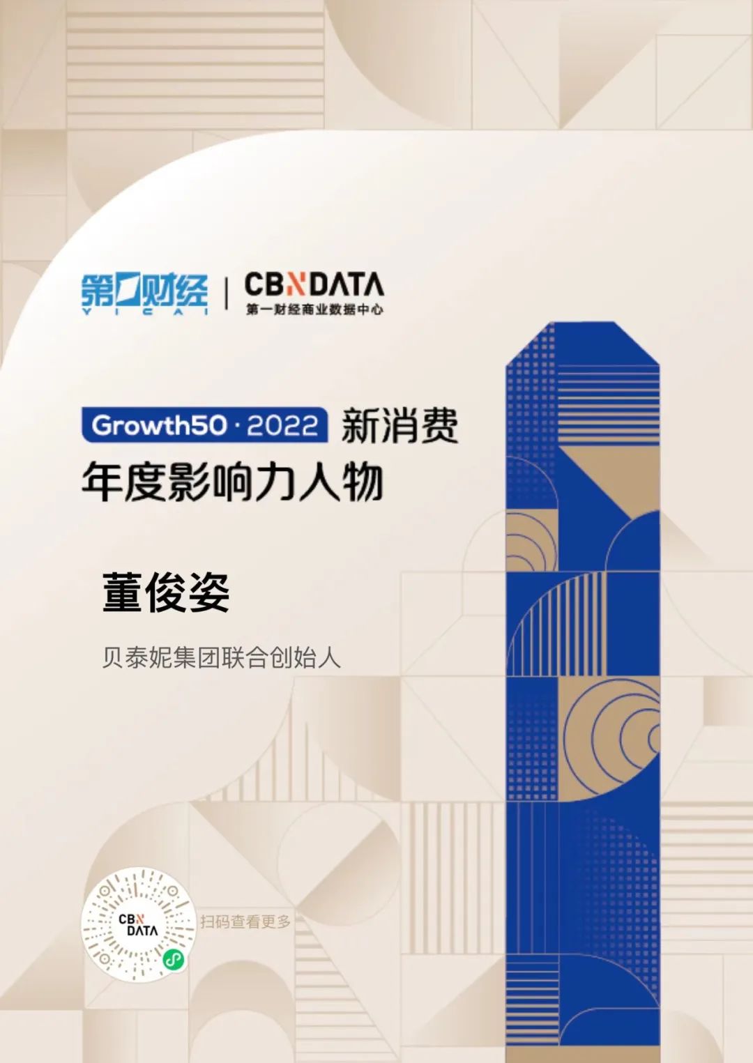 另外值得關(guān)注的還有,在一片寒意中,除了品牌殊榮加身,其高管也得到了來自社會的高度認(rèn)可。8月24日,由第一財經(jīng)、CBNData(第一財經(jīng)商業(yè)數(shù)據(jù)中心)主辦的“2022中國新消費品牌增長力白皮書發(fā)布會暨Growth50頒獎典禮”上,貝泰妮集團聯(lián)合創(chuàng)始人董俊姿榮獲Growth50·2022新消費“年度影響力人物”。
