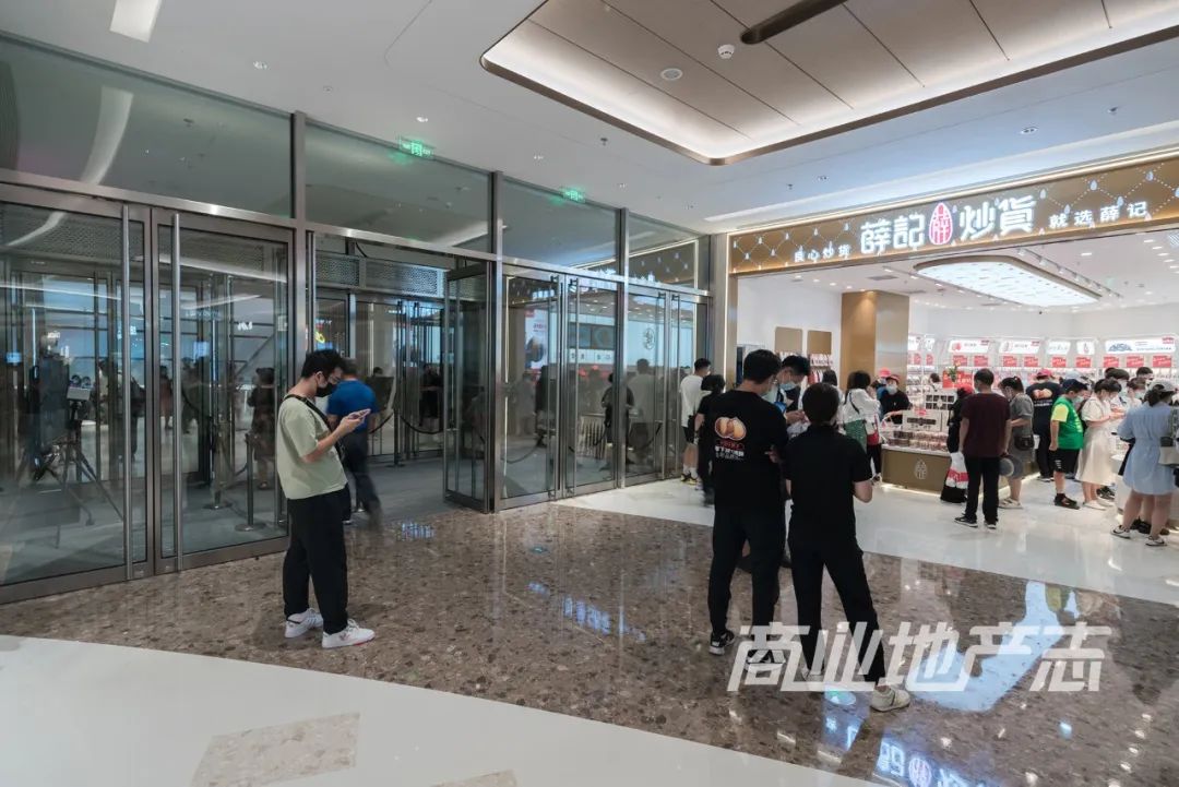 開業(yè)當天,2號門附近是全場排隊人數(shù)最大的區(qū)域之一,目測自10點正式開業(yè),一直保持著約300人的排隊量。樂樂茶的工作人員說,幾乎連喝水的時間都沒有。