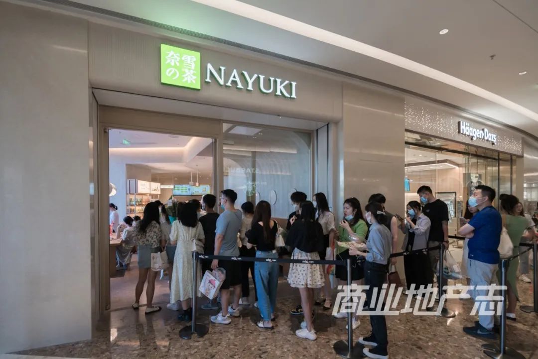 該樓層的2號門附近,聚集了星巴克、奈雪的茶、樂樂茶、瀘溪河等網(wǎng)紅門店。