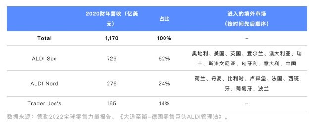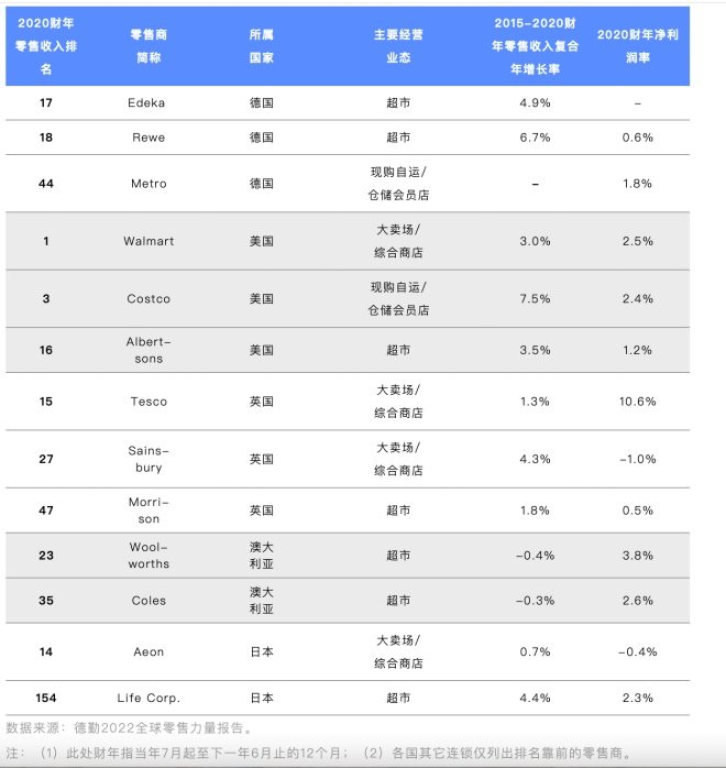 根據(jù)德勤《2022全球零售力量》報告,全球前十大零售商中,德國的Schwartz Group(旗下Lidl)和ALDI分別位列第四和第八,他們的主營業(yè)務是硬折扣超市。