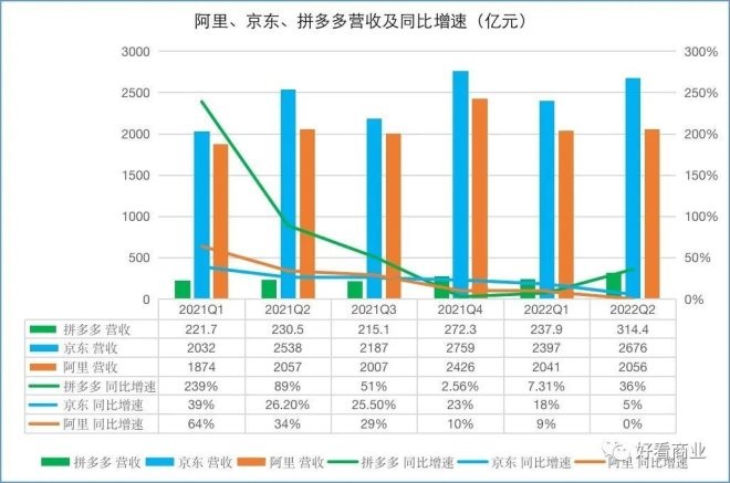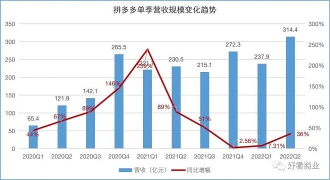 在疫情反復(fù)的Q1和Q2,拼多多逆勢增長,營收同比分別增長7.31%和36%。
