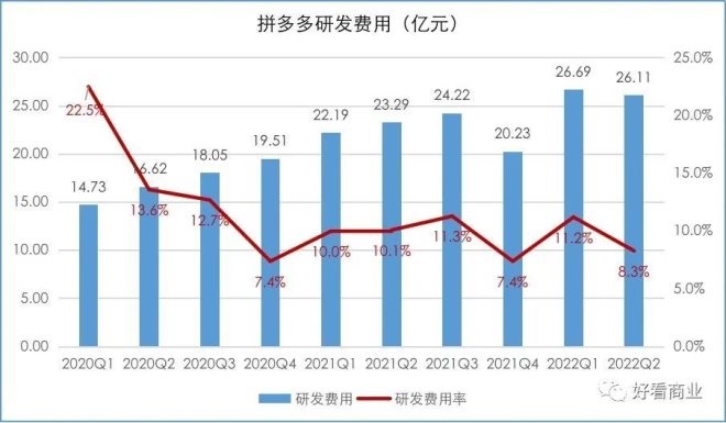 最近幾個季度以來,拼多多在研發(fā)方面的投入也在持續(xù)增加。