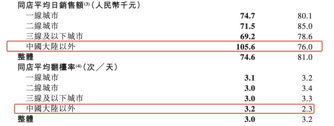 海底撈同店日銷及翻臺(tái)表現(xiàn),圖據(jù)財(cái)報(bào)