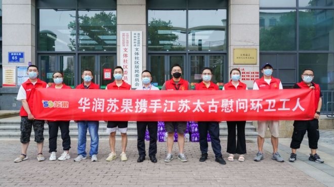 如8月1日,華潤(rùn)蘇果寶應(yīng)國(guó)際城店、合肥徽州大道店、合肥長(zhǎng)豐路店、舒城桃溪路店分別走進(jìn)駐地消防大隊(duì),為隊(duì)員們送去飲用水、西瓜、洗護(hù)用品等清涼物資;8月12日,華潤(rùn)蘇果攜手華潤(rùn)怡寶走進(jìn)南京市雨花臺(tái)區(qū)賽虹橋社區(qū),慰問(wèn)一線社區(qū)工作者;8月23日,華潤(rùn)蘇果攜手可口可樂(lè)分別走進(jìn)紅色驛站橋西苑社區(qū)、紅色驛站紫霞社區(qū)及建鄴區(qū)南湖街道,為奮戰(zhàn)在防疫一線的社區(qū)工作人員送去純凈水、水果、洗護(hù)用品等清涼物資,致敬社區(qū)工作人員、防疫志愿者及轄區(qū)環(huán)衛(wèi)工人。