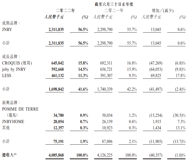成熟品牌JNBY期內(nèi)收入同比僅錄得0.6%的增長至23.11億元,較上半財年逾9%的增幅再度放緩,占集團收入的56.5%。