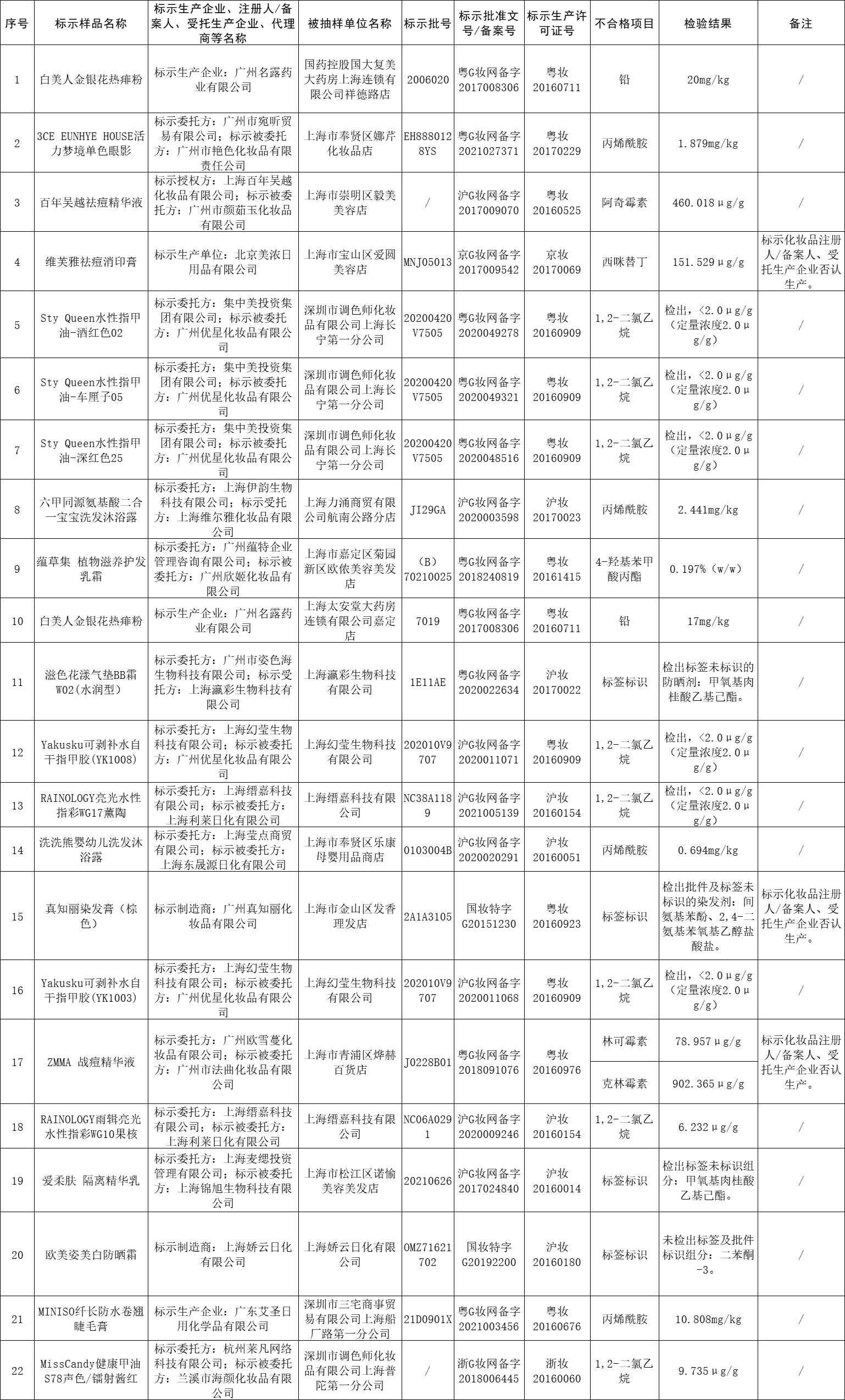8月29日,上海市藥品監(jiān)督管理局發(fā)布了關(guān)于2022年第2期化妝品監(jiān)督抽檢質(zhì)量通告。