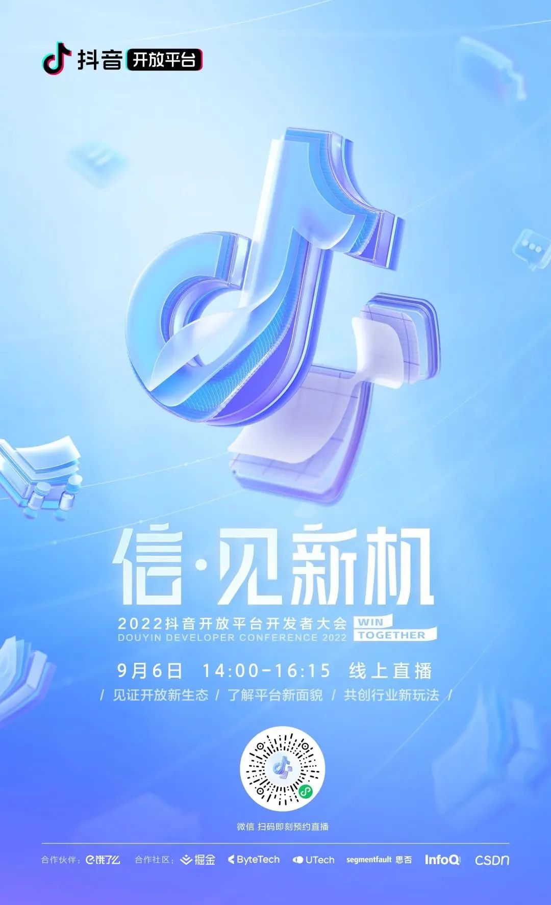 抖音接下來的動作進一步佐證了這一點。日前,抖音開放平臺宣布將于9月6日舉辦抖音開放平臺開發(fā)者大會,大會以“信·見新機”為主題,聚焦“為什么要開放”、“開放什么”、“開放的最佳實踐”等命題,旨在助力抖音開發(fā)者和經(jīng)營者實現(xiàn)數(shù)字化新增長。