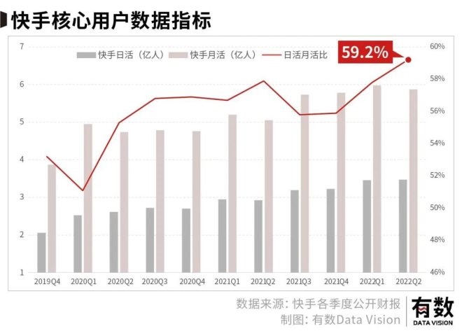 月活MAU維持在5.87億,日活DAU為3.47億,雖然失去了增長,但也沒有因為營銷費用的削減而降低,用戶粘性指標 DAU/MAU(日活/月活)提升至59.2%,為歷史新高。