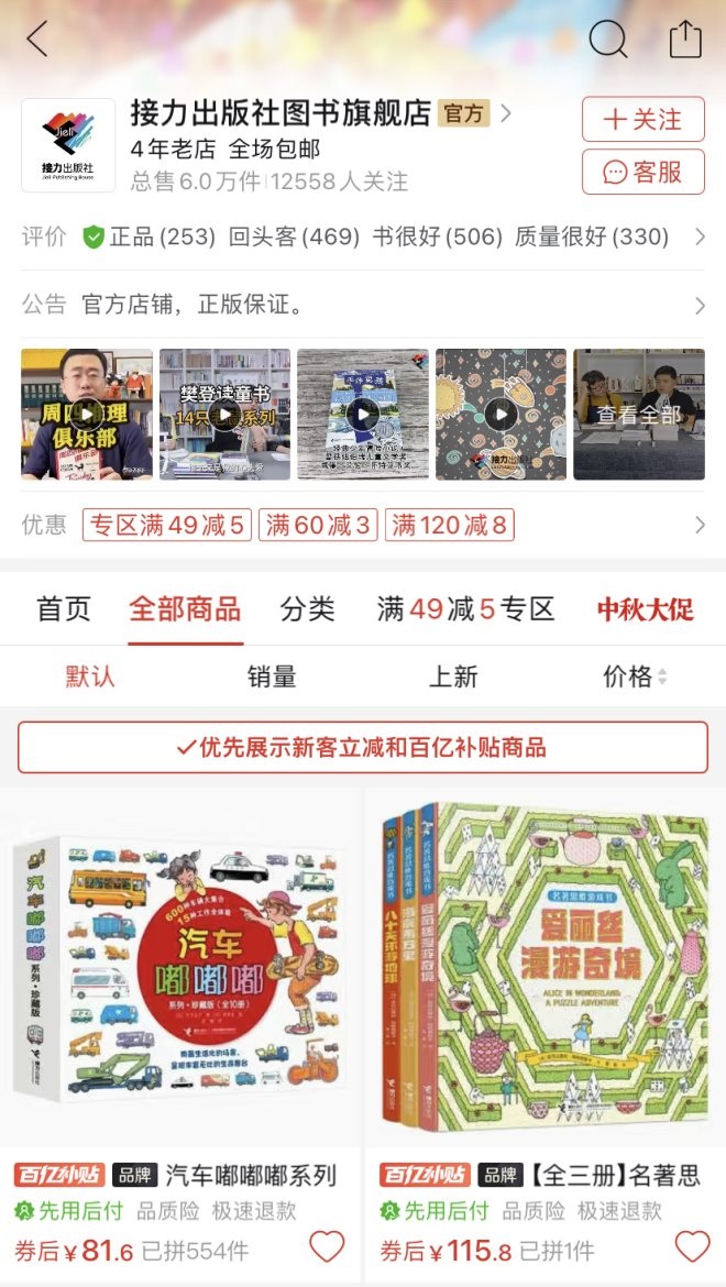 “我們聯(lián)合權(quán)威出版社、圖書品牌一起精選上百本優(yōu)質(zhì)書目加碼補貼,并集中上新讀書月專場活動頁面。對于日銷破千的熱門書目,我們已聯(lián)系出版方緊急加印,爭取為更多小讀者和大學生讀者送上開學禮物。”“多多讀書月”負責人表示。