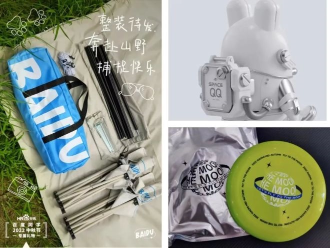 因?yàn)榛ヂ?lián)網(wǎng)大廠的年輕血液比較多,所以有一些企業(yè)的中秋禮盒還非常“趕時髦”。比如,騰訊的禮盒中藏著一只叫“月光寶鵝”的新潮手辦,小米的禮盒中附贈了一只讓年輕人停不下來的飛盤,百度的禮盒更是內(nèi)置了天幕、折疊椅、野餐墊等露營裝備。