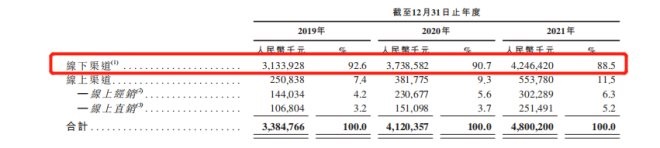 衛(wèi)龍有多依賴經(jīng)銷商呢?根據(jù)招股書,在整體業(yè)績中,衛(wèi)龍幾乎九成銷售額來自經(jīng)銷商。2019年至2021年,線下經(jīng)銷商的銷售分別占衛(wèi)龍總收入的92.6%、90.7%及88.5%,而線上經(jīng)銷商的銷售分別僅占4.2%、5.6%及6.3%。