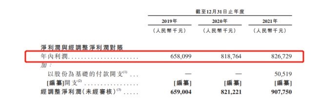 據(jù)招股書顯示,其于2019年至2021年分別錄得年內(nèi)利潤約6.58億元、8.19億元和8.27億元,值得注意的是,通過計算,2020和2021年兩年,其在年內(nèi)利潤增速上,也出現(xiàn)了下滑,并從2020年的24.47%下滑至2021年的0.98%。
