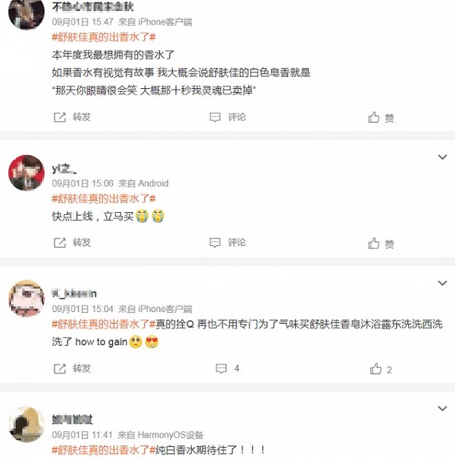 “希望舒膚佳推出更多氣味的香水”,雖然此次舒膚佳發(fā)布純白香水是為了紀(jì)念品牌30周年,但既然開了頭,網(wǎng)友們熱情高漲,呼吁品牌上線更多香水。對于品牌是否會規(guī)劃香水線,青眼第一時間聯(lián)系舒膚佳品牌方,對方回復(fù)稱,暫時沒有這個計(jì)劃,本次推出的香水是舒膚佳30周年的紀(jì)念周邊,以贈品的形式在天貓和抖音上線。