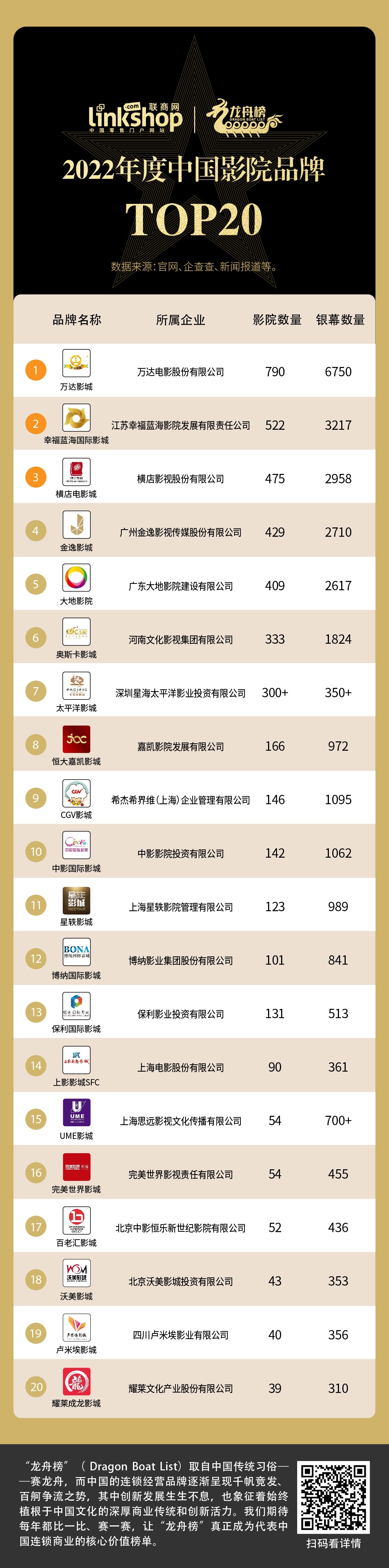 2022年度電影院連鎖品牌TOP20