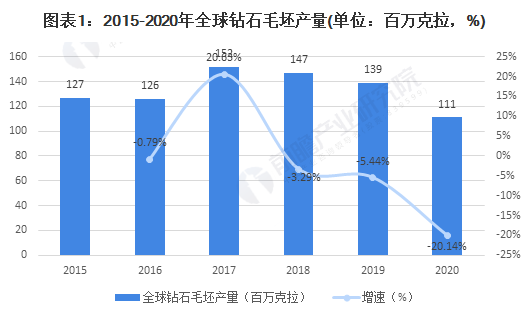 天然鉆石的供給在2008年之后似乎受到了永久性的打擊。銀河證券的數(shù)據(jù)顯示,2008年至2018年,全球天然毛坯鉆石產(chǎn)量持續(xù)下降,年復合增長率為-1.14%。從2020年12月到2021年7月,戴比爾斯五次上調(diào)了天然鉆石的原石價格。