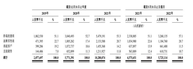 數(shù)據(jù)顯示,2019年,洪九果品新興零售渠道營收為4.71億元,2021年已增至21.33億元,年復(fù)合增長率達112.81%。其中,僅社區(qū)團購渠道的收入,由2020年的3950萬元增長1277.5%至2021年的5.44億元。