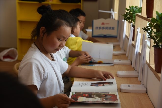 (高李村小學(xué)的學(xué)生們,正沉浸在知識(shí)的海洋里。攝:王夢(mèng)楠、董旭)
