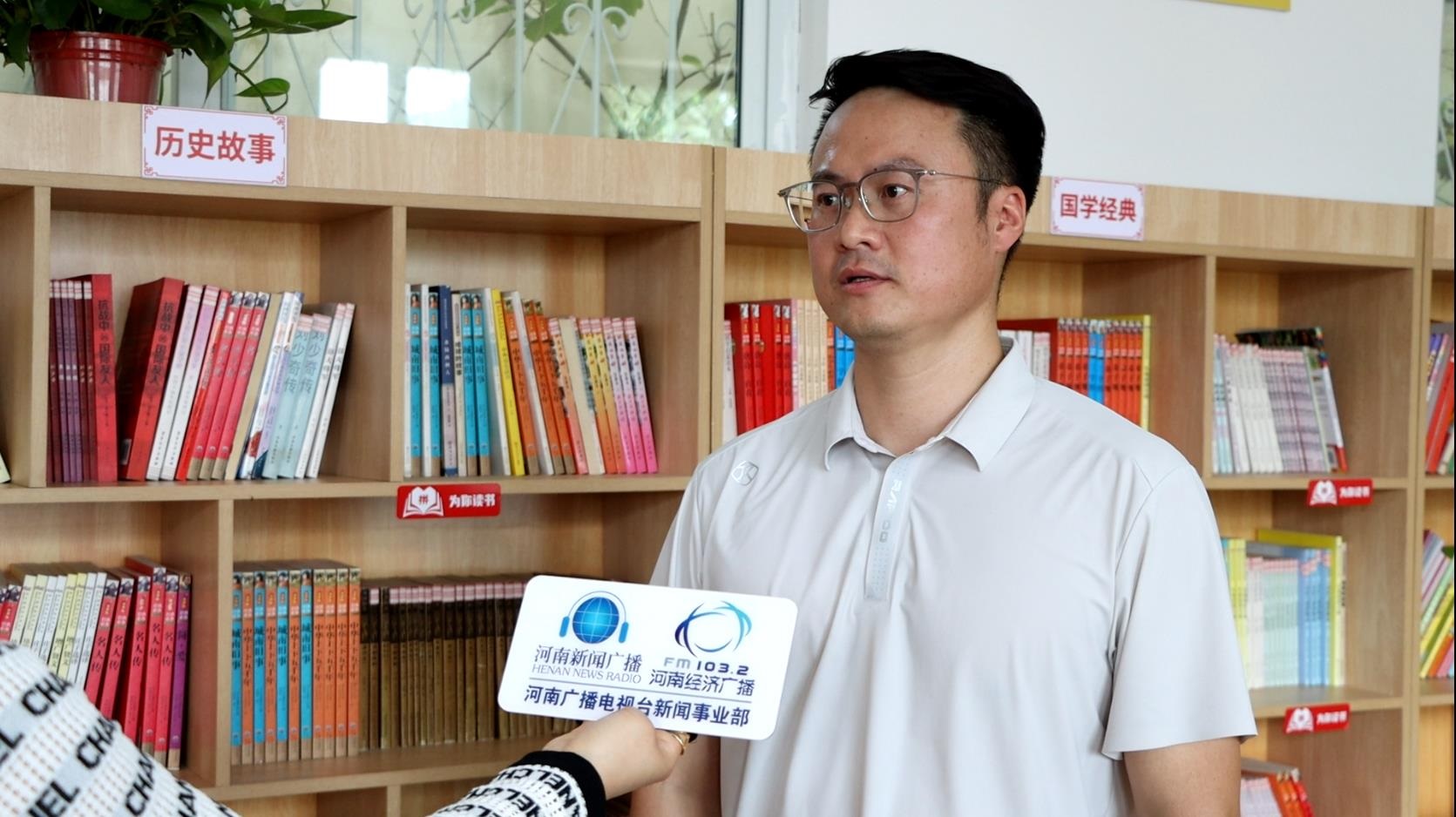 (河南省委宣傳部派駐駐馬店上蔡縣邵店鎮(zhèn)高李村第一書記史偉華接受媒體采訪,號(hào)召更多的愛心力量投身公益事業(yè),支持鄉(xiāng)村教育。攝:王夢(mèng)楠、董旭)