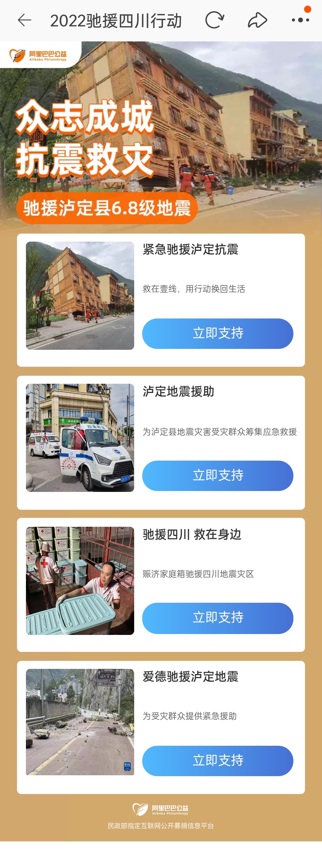 阿里巴巴公益基金會(huì)首期500萬(wàn)捐贈(zèng)瀘定地震災(zāi)區(qū)