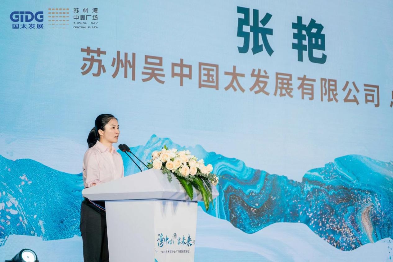 發(fā)布會(huì)上,蘇州吳中國太發(fā)展有限公司總經(jīng)理張艷上臺(tái)發(fā)表了致辭,她表示:蘇州灣中心廣場位于吳中太湖新城的核心區(qū)域,是吳中太湖新城數(shù)字經(jīng)濟(jì)創(chuàng)新港的核心承載地,國太公司非常有信心能夠吸納國內(nèi)乃至國際的眾多知名品牌入駐,將蘇州灣中心廣場打造成太湖新城的精致生活中心。
