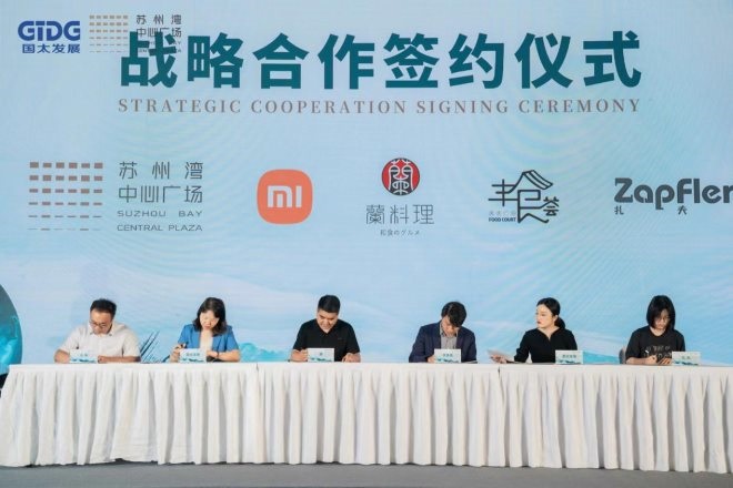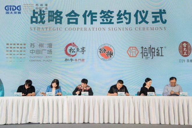 現(xiàn)場,蘇州灣中心廣場與「量子制造·元」、「班嵐」、「Tim Hortons」、「麥當(dāng)勞」、「小米|米家智能家居館」、「蘭」、「豐食薈」、「扎夫|Pizza farm」、「松魚亭·松宴」、「松神」、「拾悅紅」、「雷允上」等商戶現(xiàn)場簽約,期待一同給顧客提供全新的文化、休閑、娛樂的都市樂活感。