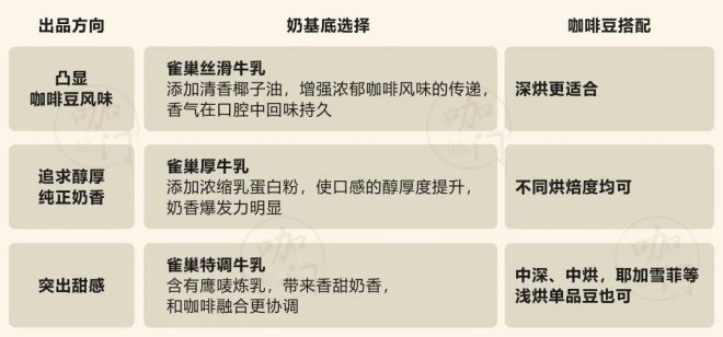 最后,可以根據(jù)以下圖表,梳理不同風(fēng)味需求下咖啡豆與乳制品的搭配選擇: