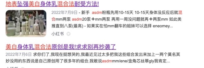 據(jù)公開資料,品牌全名是 ASDM beverly hills ( 下稱ASDM , 譯名為“比佛利山” ),事情起因是,小紅書一位經(jīng)營(yíng)兩個(gè)賬號(hào)共 10 萬(wàn)粉絲的美妝博主 ( “ 評(píng)論用小小號(hào)”“美容小小王” ) 推薦了含有高濃度熊果苷的ASDM美白身體乳 , 并自創(chuàng)了ASDM美白身體乳與其他品牌如芯絲翠 、 MM 、 Cellbooster果酸身體乳混合使用的方法 ( 目前該推薦筆記已被博主隱藏 )。