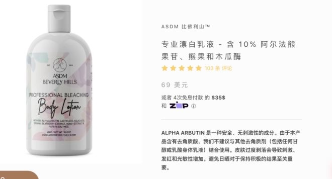 事情到這里,兩位美妝博主的罵戰(zhàn)告一段落,但剛剛走紅的ASDM仍然要面對(duì)質(zhì)疑。到底是ASDM身體乳產(chǎn)品有問(wèn)題,還是博主推薦的混用方式有問(wèn)題?白斑的出現(xiàn),是熊果苷導(dǎo)致的嗎?