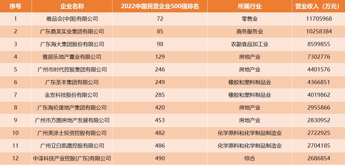 廣州12家企業(yè)入圍2022中國民營企業(yè)500強 唯品會領(lǐng)跑