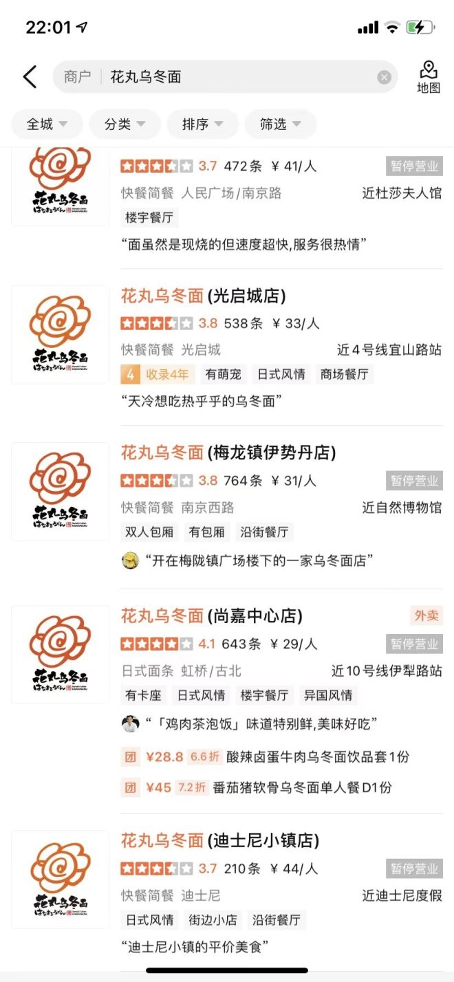 《聯(lián)商網(wǎng)》從大眾點(diǎn)評查詢到,目前花丸烏冬面僅在上海美羅城和光啟城,以及青島永旺東部購物中心3家門店還在營業(yè),其他門店均已關(guān)閉。