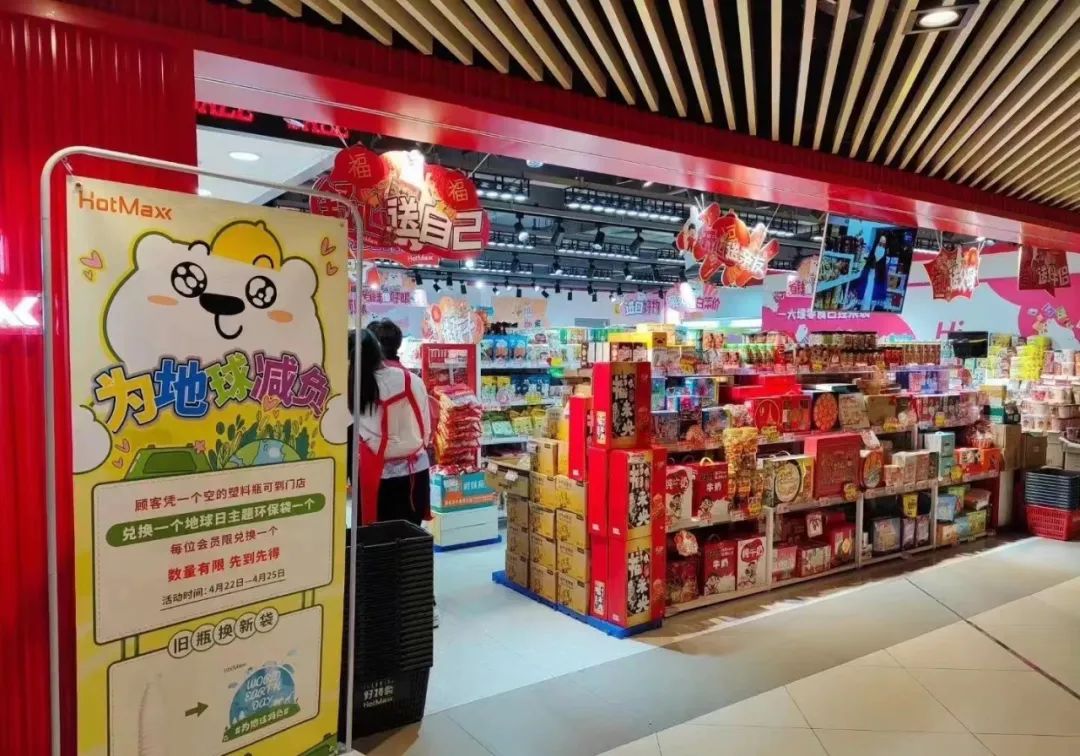紅白色的巨大招牌下,低至2折的進口面膜擺在櫥窗最顯眼位置。這里有6折的星巴克咖啡,3折的卡樂比薯片,運氣好的話,顧客甚至能買到1元1瓶的元氣森林。