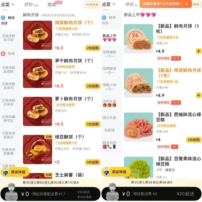▲上海人最愛鮮肉月餅,外賣銷量排名第一。圖源:美團