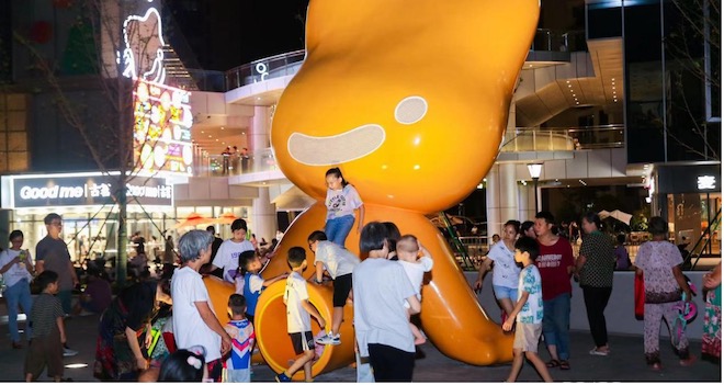 除了豐富的活動(dòng)內(nèi)容之外,走進(jìn)寧波中旅城If mall,最引人注目的就是數(shù)座以原創(chuàng)IP形象YOYI為主題打造的特色藝術(shù)裝置場(chǎng)景。