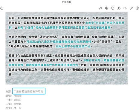 這是官方首次正面批評(píng)“外泌體化妝品”,山東省化妝品行業(yè)協(xié)會(huì)以及多家行業(yè)媒體對(duì)該文章進(jìn)行了轉(zhuǎn)載和報(bào)道。