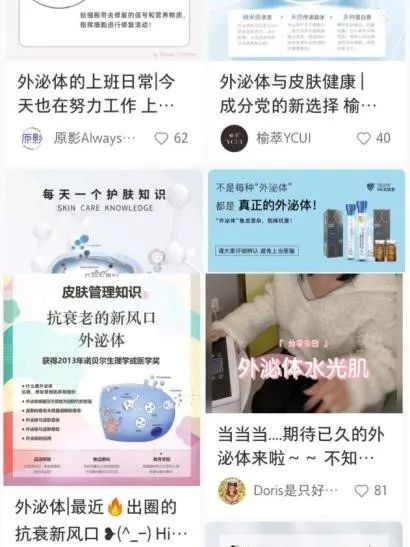 抗衰老市場的巨大空間,加上外泌體目前在全球的熱度,讓不少企業(yè)看到了“外泌體”概念在美容行業(yè)的市場價(jià)值!巴饷隗w”在化妝品和整形美容界很快成了當(dāng)紅“炸子”,并引起了不少品牌跟風(fēng)“外泌體護(hù)膚”概念,強(qiáng)勢(shì)“收割”市場。