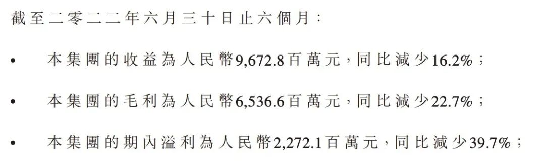 據(jù)飛鶴發(fā)布的2022半年報數(shù)據(jù),公司上半年收益為96.73億元人民幣,同比減少16.2%;毛利為65.37億元,同比減少22.7%;溢利(凈利潤)為22.72億元,同比減少39.7%。