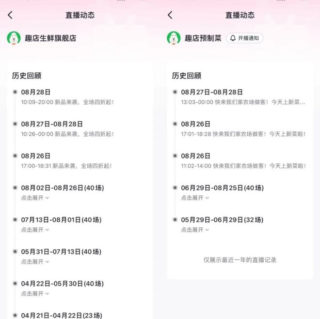 8月23日,趣店恢復(fù)直播。但職餐網(wǎng)發(fā)現(xiàn),恢復(fù)不足兩周后,抖音兩大官方直播間“趣店預(yù)制菜”、“趣店生鮮旗艦店”再次停播,最后一次直播時(shí)間顯示為8月28日。