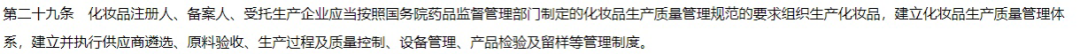另外,《化妝品生產(chǎn)質(zhì)量管理規(guī)范》也明確規(guī)定,委托其他企業(yè)生產(chǎn)化妝品的注冊人、備案人,應(yīng)當(dāng)建立質(zhì)量管理體系,并監(jiān)督受托生產(chǎn)企業(yè)建立且執(zhí)行符合本規(guī)范的生產(chǎn)質(zhì)量管理體系。