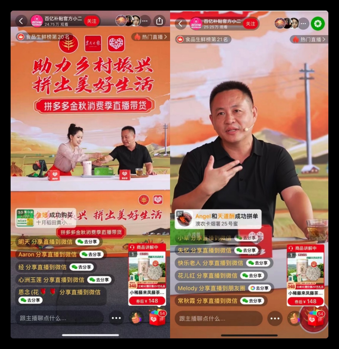啟動儀式現(xiàn)場,河南省洛寧縣、四川省儀隴縣、湖北省來鳳縣、湖南省永順縣、湖南省龍山縣、貴州省劍河縣等12個國家鄉(xiāng)村振興重點區(qū)縣接力參與助農(nóng)直播帶貨活動。各地政府有關(guān)負(fù)責(zé)同志攜手農(nóng)民代表走進(jìn)拼多多直播間,為全國觀眾推介當(dāng)?shù)氐奶厣r(nóng)產(chǎn)品,來鳳藤茶、龍山百合、長順蘋果、石城客家酒釀等50余款優(yōu)質(zhì)地標(biāo)農(nóng)產(chǎn)品亮相直播活動。