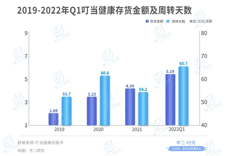 另一方面,叮當健康還在面臨著存貨方面的壓力。