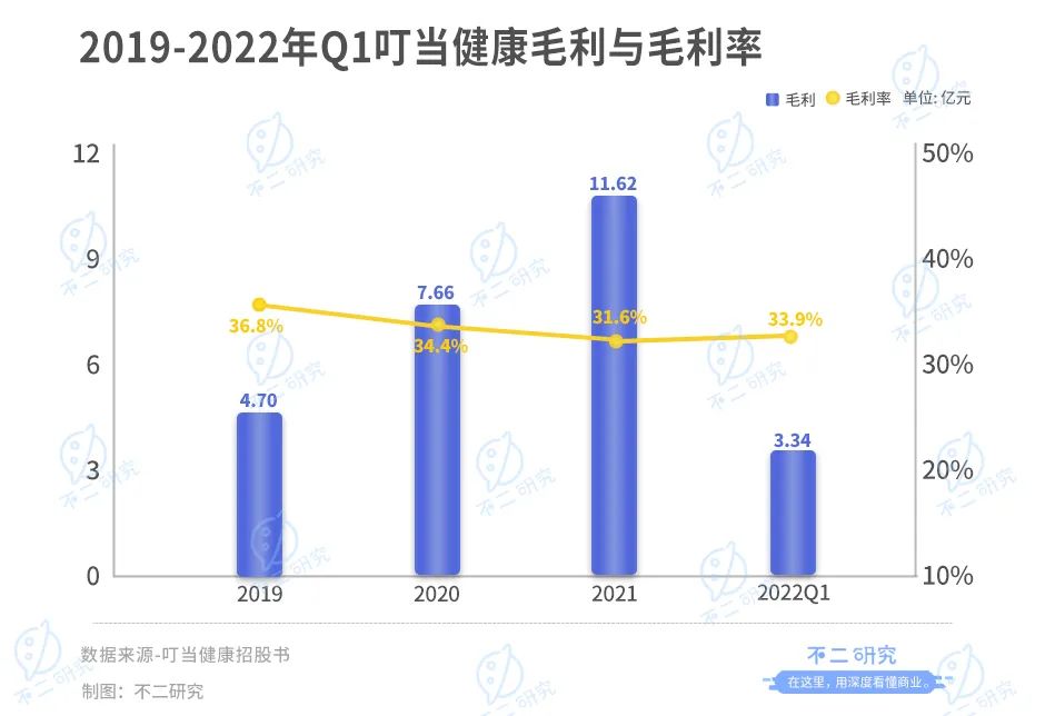 「不二研究」認為,雖然叮當健康的營收規(guī)模不斷擴大,但增速卻持續(xù)下滑,加之不斷增加的成本,也在進一步蠶食著利潤。